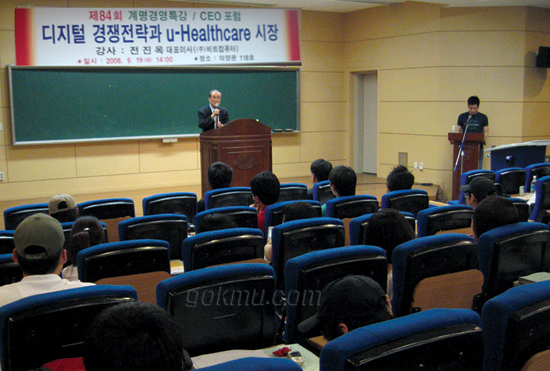 지난 19일 의양관 118호에서 열린 제 84회 계명경영특강이 ‘디지털 경쟁전략과 u-Healthcare 시장’이라는 주제로 열렸다.