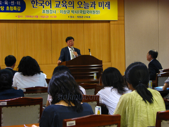 강연을 맡은 이상규 원장은 “외국인을 대상으로 하는 한국어교육의 비제도화는 제도적 교육현장 구성과 교원의 자격 관리로 해결할 수 있다”고 말했다.