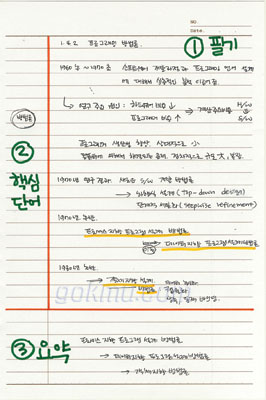 - 필요한 단어만 기록하기 때문에 필기시간이 절약되고, 복습할 때 또한 필요한 단어만 읽기 때문에 시간이 훨씬 절약된다.