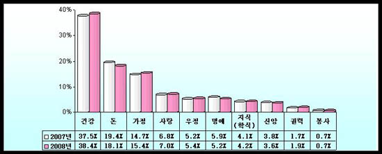 해외연수 및 봉사활동프로그램 참여의사에 적극적으로 ‘참여하겠다’는 비율이 49%로 나타나 해외연수 및 봉사활동프로그램을 다양화하여 많은 학생들이 체험할 수 있는 기회를 제공하여야 할 것이다.● 직업 선택에 있어서 가장 중요한 기준은?