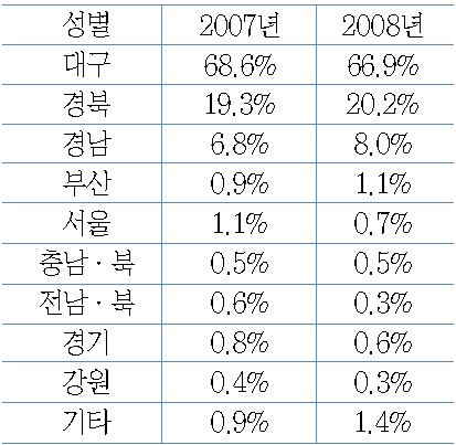 대구·경북지역에서의 지원율이 87% 정도를 차지하였다. 대구 경북지역의 입시홍보에 중점을 두면서도 탈지역화 전략이 필요할 것으로 보인다.