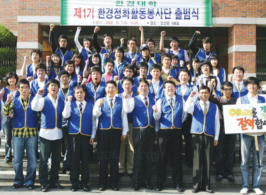 지난 7일 환경대학 주최 ‘제 1기 환경정화활동 봉사단 출범식’이 오산관 108호에서 열렸다. 이에 따라 36명의 환경정화활동 봉사단은 앞으로 매주 금요일 11시부터 2시까지 성서캠을 돌며 환경정화활동을 펼치게 된다.