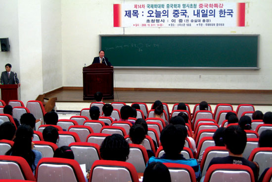 지난 8일 제 14차 명사초청 현대중국포럼이 ‘오늘의 중국, 내일의 한국’이라는 주제로 스미스관 100호에서 열렸다. 강연을 맡은 숭실대 이중 전 총장은 “우리는 중국의 발전에 적절히 대처해 나가야 한다”고 조언했다.