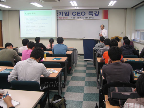 지난 10월 23일 공학관 1115호에서 공과대학 성공중소기업 CEO 특강이 열렸다. 연사로 초청된 (주)모토닉 심상학 대표이사는 기업을 이끄는 데에 필요한 요소들을 꼽으며 “누구에게나 신용을 쌓고 신뢰를 유지하는 것이 가장 중요하다”고 말했다.
