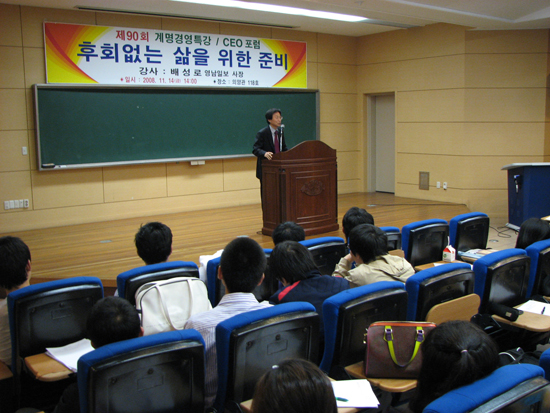 연사를 맡은 영남일보 배성로 사장은 ‘후회 없는 삶을 위한 준비’라는 주제로 강연을 진행 했다.