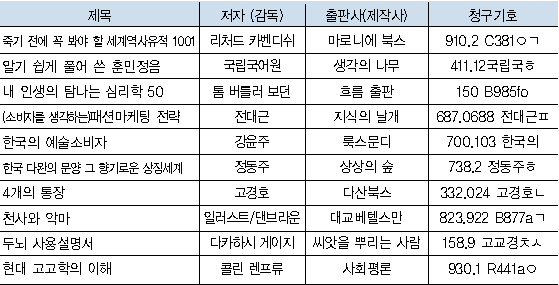 내 인생의 탐나는 심리학 50 : 프로이트에서 하워드 가드너까지 인간 탐색의 흐르과 그 핵심 / 톰 버틀러 보던 지음 ; 이정은 옮김-흐름 출판, 2008(150 B985fㅇ/4층 인문과학자료실)인간의 행동과 정신을 탐구했던 심리학의 대가들이 어떤 문제를 어떤 방식으로 연구했으며, 그 문제의식과 연구방식이 어떻게 변화했는지 보여주는 책이다. 인간이 자신을 이해하고 또 자신의 문제를 다른 시대적 배경과 사회 환경 속에서 스스로 해결하려고 한 노력들을 50명 대가의 삶과 그들이 쓴 저서의 핵심내용을 통해 명쾌하고 분명하게 소개하고 있어 심리학을 조금이나마 이해하는 데 도움이 될 것이다.