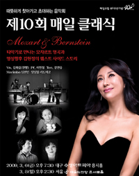 제 10회 매일클래식은 모차르트 바이올린 소나타를 비롯하여 타악기 앙상블의 독특한 편곡으로 듣는 모차르트의 명곡과 아리아, 그리고 소프라노 김원정과 테너 강연종, 타악기 앙상블과 피아노를 위해 편곡된 번스타인의 뮤지컬 ‘웨스트 사이드 스토리’로 화려한 소리와 색깔, 리듬을 만끽할 수 있다.