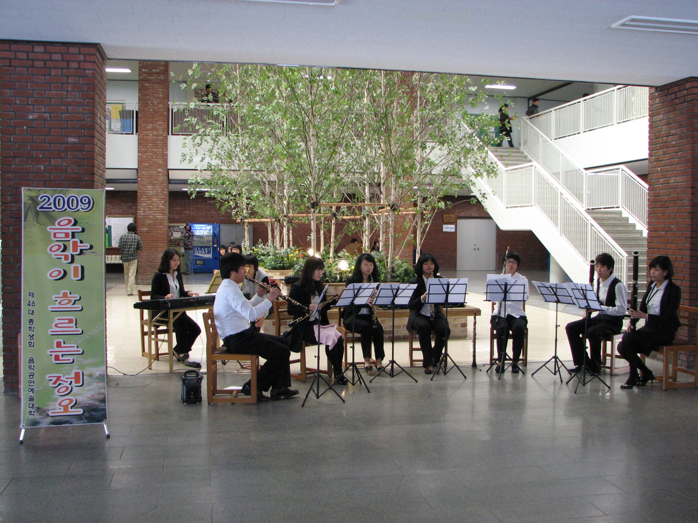 지난 11일 사회관 1층 로비에서 총학생회, 음악공연예술대학 학생회 주관, ‘2009 음악이 흐르는 정오’가 열렸다. 올해 첫 공연인 이날 행사에는 오보에 앙상블팀이 연주를 맡았으며 오보에, 바순 등 생소한 악기들을 설명하고 연주하는 시간을 가졌다.