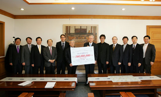지난 4일 본관 총장실에서 신일희 총장과 기독교학과 교수 6명, 졸업생 대표 4명이 참석한 가운데 어려운 학생들을 위해 마련한 1억6천8만 원의 발전기금이 전달되었다.