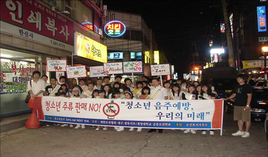대한보건협회와 보건복지가족부로부터 대학 절주동아리로 선발, 지원을 받아 절주지도자 양성교육프로그램 참가 및 전문지도자교육과 알코올상담교육을 받습니다. 또한 대학 내 절주 캠페인활동과 함께 지역 청소년 음주예방을 위한 캠페인 및 주류 판매점을 대상으로 청소년 주류 판매에 대한 모니터링 활동도 전개합니다.