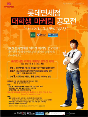 공모주제는 ‘화장품/향수 매출 활성화 전략’, ‘외국인 고객 유치 프로모션’, ‘다(多)모델 라인업 활용 캠페인 프로모션 방안’으로 이 세 가지 주제 중 하나 또는 여러 개를 혼합하여 응모 가능하다. 대상 1팀에게는 미국 IVY리그 대학에서 어학연수 참가 기회와 학비, 기숙사, 항공료 일체가 제공된다.