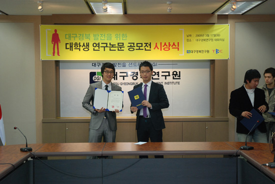 대구경북연구원이 주최한 ‘대구·경북 발전을 위한 대학생 연구논문 공모전’에서 ‘지역 정체성을 확립하기 위한 대구읍성의 상징적 복원계획에 관한 연구’라는 논문으로 최우수상을 받은 오상학(에너지환경계획학·4) 씨와 이준영(에너지환경계획학·4) 씨를 만나보았다.