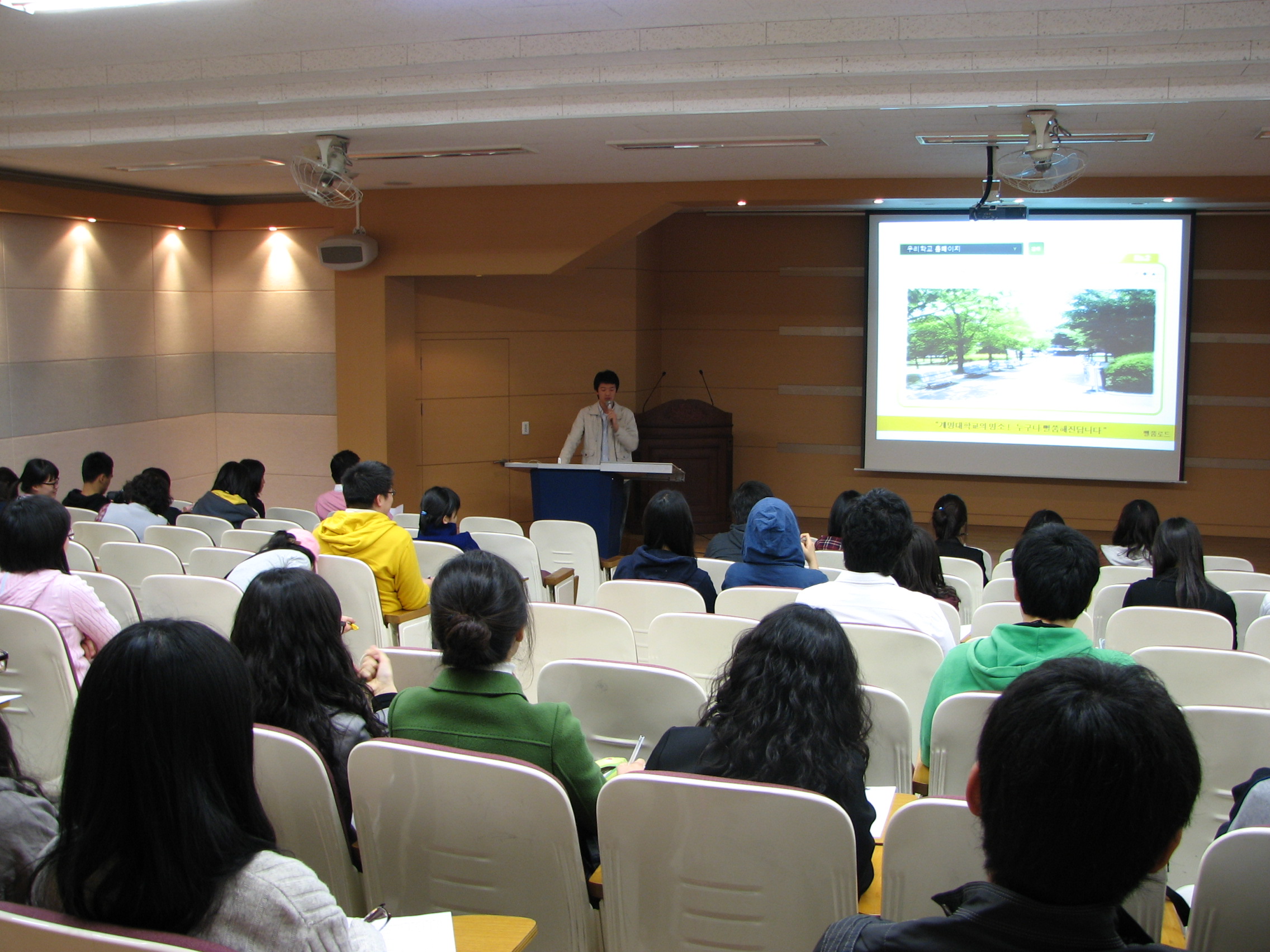 금일 사회관 124호에서 교수학습지원센터 주최, 제 3차 서포터즈 대학생활백서가 열렸다. 이날 행사는 신입생 60여명이 참석한 가운데 서포터즈들의 캠퍼스소개 및 웹 정보시스템 사용법, 각종 장학제도 등의 설명으로 진행됐다.