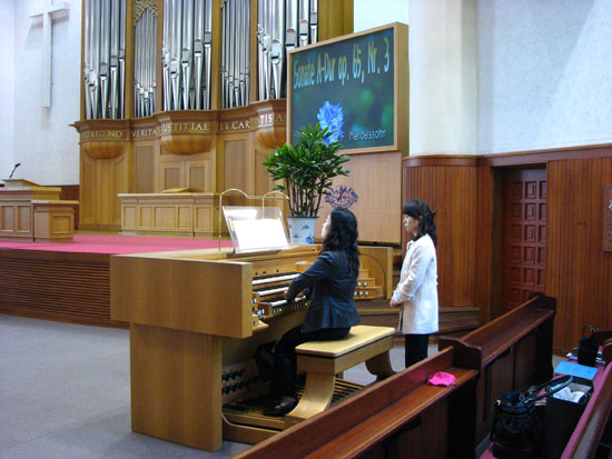 지난 7일 ‘정오 오르간 음악 산책’이 아담스 채플 대예배실에서 열렸다. 이날 한지윤 오르가니스트는 ‘Praeludium und Fuge h-moll BWV544’와 ‘Sonate A-Dur op. 65, Nr. 3’을 연주했다.