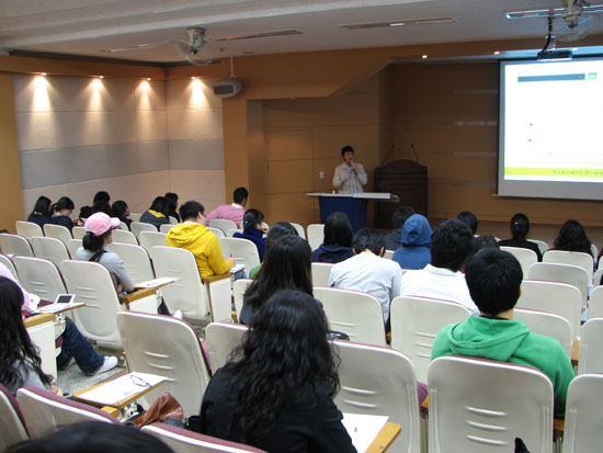 지난 31일, 사회관 124호에서 교수학습지원센터가 주최하는 제 3차 서포터즈 대학생활백서가 열렸다. 이날 행사는 신입생 60여명이 참석한 가운데 서포터즈들의 캠퍼스 소개 및 웹 정보시스템 사용법, 각종 장학제도 등에 대한 설명으로 진행됐다.
