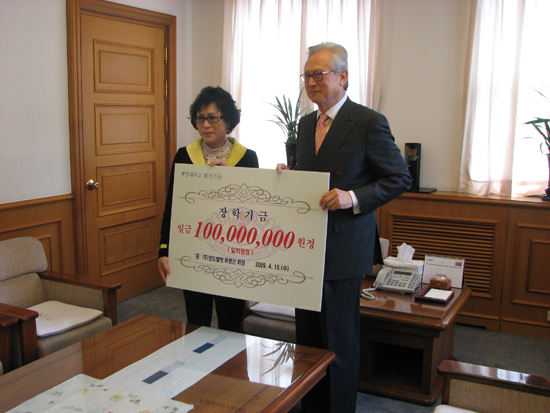 이에 신일희 총장은 “어려운 경제상황에서도 큰 돈을 발전기금으로 선뜻 내 주셔서 감사드린다”며 “이 장학금을 받는 학생들은 평생 잊지 못할 것”이라고 감사의 인사를 전했다.