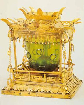 송림사전탑은 1959년에 크게 보수하였는데 이때 발굴된 사리함은 감은사의 사리함과 더불어 당대 최고의 명품으로 인정될 만큼 뛰어난 예술성과 세련된 장식성을 보여준다. 전체적으로 부처님의 몸을 그 무덤으로 인도하는 상여모양이다. 금관의 장식으로 쓰이는 불꽃문양이 머리 부분을 덮고 있고, 아래쪽은 복련으로 덮여있는 기단과 그 위로 사방에 난간을 두르고 있다. 가운데는 초록의 유리병(잔)과 그 속에 작은 사리병이 있다. 어떤 사람들은 이슬람의 수입품으로 보기도 하나 이미 신라에서 초록의 유리를 만들었다는 증거도 있어 신라인의 솜씨로 보아야 할 것이다. 이때 발굴된 유물 가운데 거북모양의 석함이 있었는데 대웅전 앞에 놓아두었으나 그 덮개돌을 도둑맞아 지금은 새것으로 만들어 덮어놓았다. 그러나 어색하기 짝이 없다.