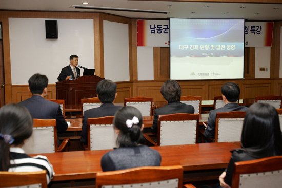 지난 16일, 본관 대회의실에서 대구광역시 남동균 정무부시장이 ‘대구광역시 경제정책 방향’이라는 주제를 가지고 특강을 펼쳤다.