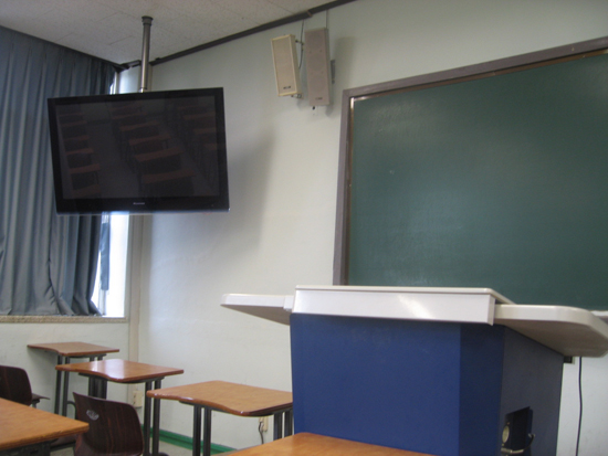 우리학교에 다니는 학생들이라면 누구나 한 번쯤 제대로 작동되지 않는 컴퓨터, 빔 프로젝터 등의 기자재로 인해 수업이 지연되는 경험을 해 보았을 것이다. 특히, 여름이 되면 과열로 인해 자동으로 꺼지는 빔 프로젝터를 많이 볼 수 있는데, 이번에 설치된 PDP TV(이하 PDP)는 과열로 인해 작동이 되지 않는 빔 프로젝터를 대비하여 수업을 진행할 목적으로 설치되었다.