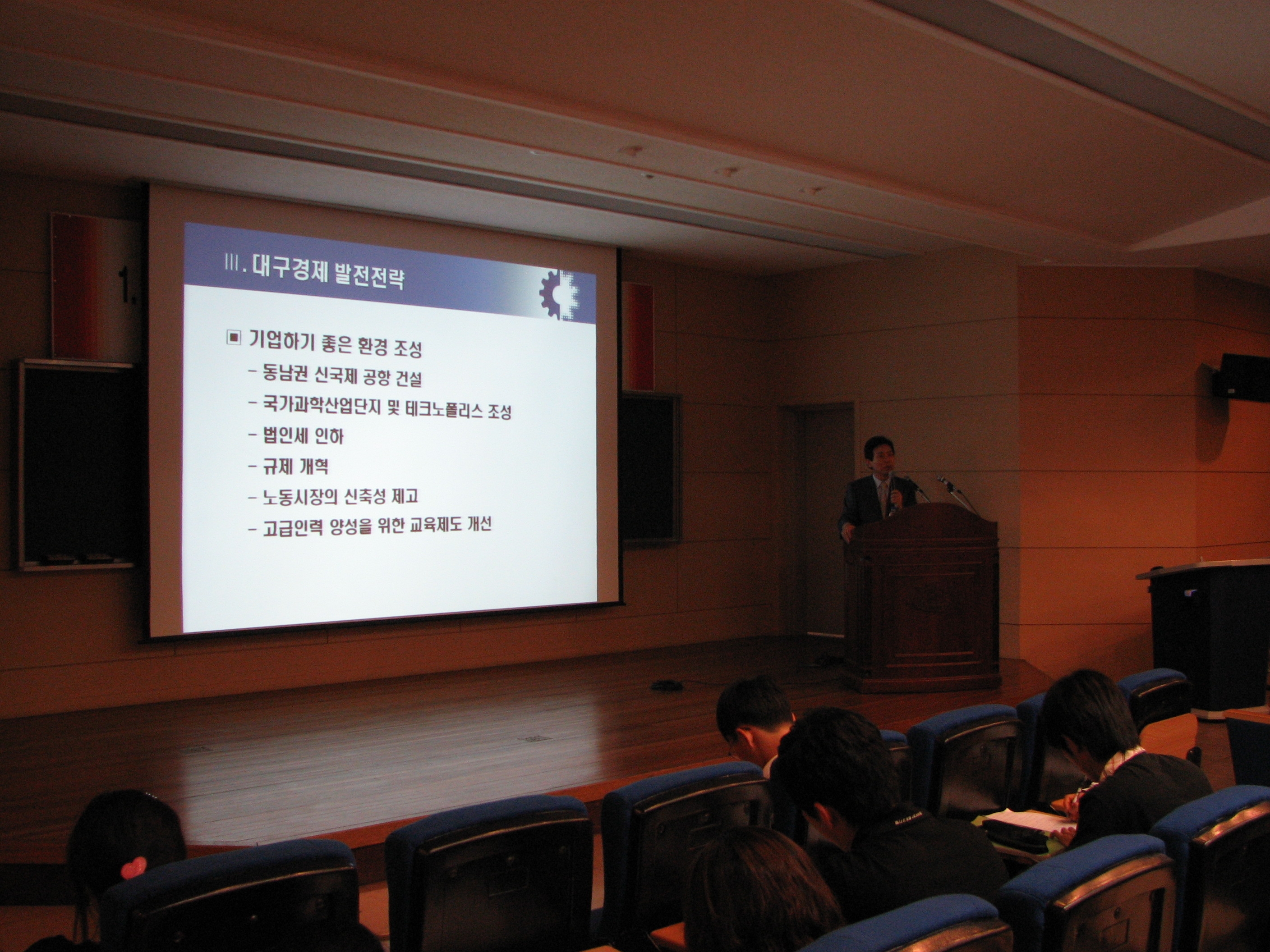 지난 5월 8일, ‘제 100회 계명경영특강/CEO포럼’이 ‘글로벌유통기업의 경영혁신’, ‘대구경제의 현황과 문제’라는 주제로 진행됐다. 이인중 소장은 미국 유통기업의 혁신 사례와 함께 대구경제의 발전방향에 대해 설명했다.