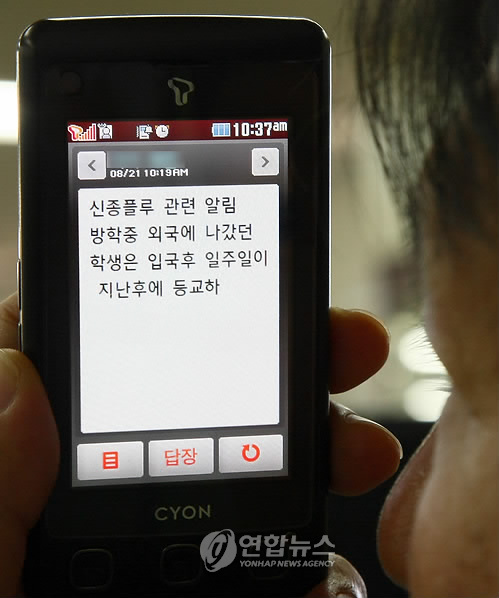 (전국종합=연합뉴스) 강의영 기자 = 초.중.고교와 대학 등 각급 학교가 여름방학을 끝내고 속속 개학 또는 개강하고 있으나 전국적으로 신종플루가 걷잡을 수 없이 확산하면서 어수선한 분위기가 이어지고 있다.