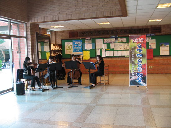 이날 행사는 음악·공연예술대학 관현악과의 ‘현악 4중주’ 팀의 연주로 이뤄졌으며, ‘아침’, ‘Last canival', ‘냉정과 열정사이’, ‘시바여왕의 도착’ 등 8곡이 연주됐다.