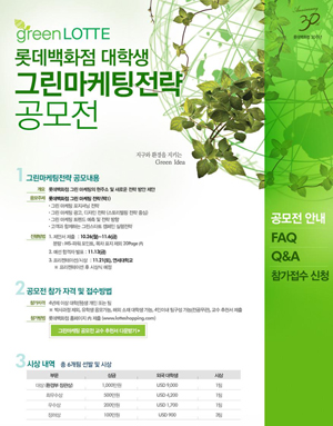 기간 : ~ 2009. 11. 15Green LOTTE 마케팅전략 공모전