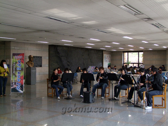 지난 28일, 동산도서관 1층 로비에서 ‘2009 음악이 흐르는 정오’가 ‘계명 클라리넷 콰이어’팀의 연주로 진행됐다.