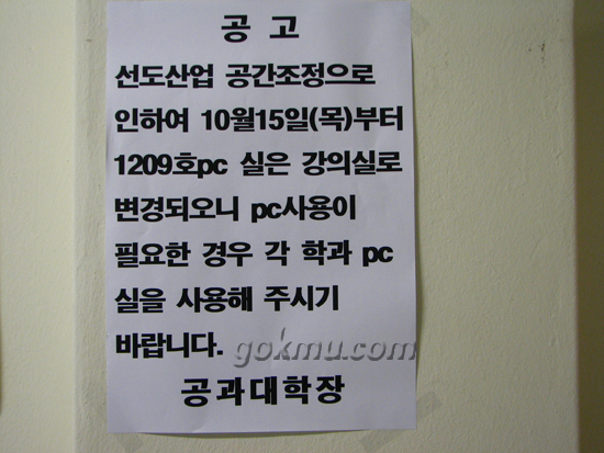 이에 선도산업공간조정 담당자인 공과대학 학사행정팀 김경환 선생은 “학생들의 의견을 수렴하여 1209호를 계속 공용PC실습실로 사용하기로 결정했다”고 밝혔다. 또한 “앞으로 신설되는 건축학대학에 선도산업공간이 마련되면 더 좋은 시설에서 학생들이 공부할 수 있을것”이라고 말하며 현재 공간 조정이 이루어진 곳은 12월부터 공사에 들어갈 것이다”라고 추후 일정을 이야기 했다.