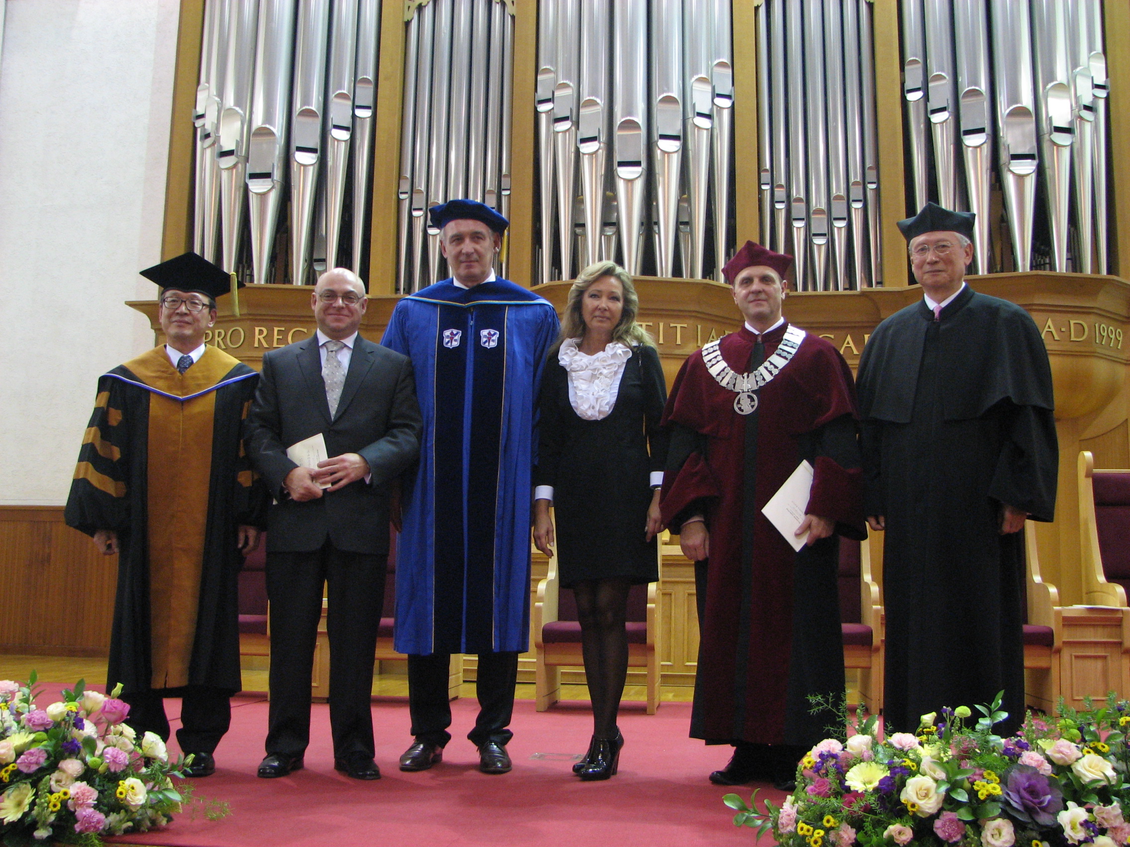 이날 학위수여식에는 세계각국의 유명 인사들이 참석해 축하의 말을 전했다. 특히 주한 폴란드 대사이자 우리학교 유럽학과 특임교수로 임명된 마렉 차우카 주한 폴란드 대사가 참석해 축사를 했으며, 한국인 최초로 쇼팽국제음악콩쿠르에서 입상한 임동민(피아노·부교수) 교수가 축주를 했다.
