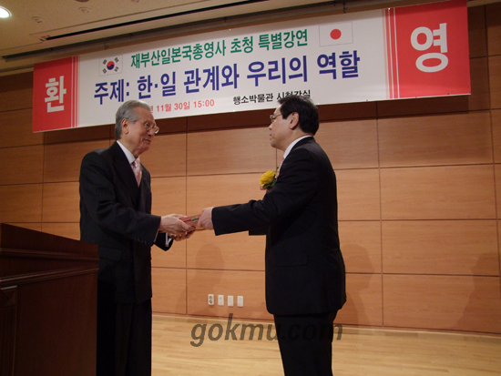 지난 11월 30일 행소박물관 시청각실에서 일본총영사 특임교수 임명식 및 초청 특별강연이 열렸다.