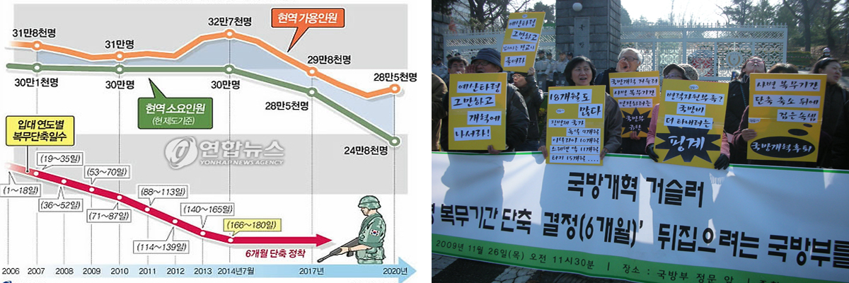 국방부가 2년 전의 입장을 바꾸어 복무기간 단축 축소를 들고 나온 이유는 자신들이 요구했던 국방예산의 증액이 받아들이지 않은 것에 대한 반발로 보인다. 특히 전력증강을 위해 편성했던 전력유지비 2415억 방위력개선비 3678억 원의 삭감되자 전력증강 부족 예산을 병력으로 채우겠다는 것이다. “`선(先)전력화, 후(後)감축’이란 기본 명제에 따라 병력감축이 이뤄져야 하는데 전력화가 일부 늦어져 병력 감축 역시 늦어질 수밖에 없지 않겠느냐”는 국방부 관계자의 11월 24일 연합뉴스 인터뷰 내용이 이 사실을 증명해주고 있다.