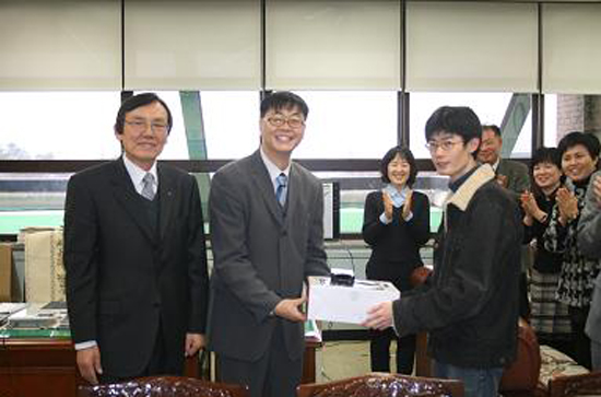 이번 경품이벤트는 회원가입, 블로그 원격 스크랩, 논문 다운로드 등의 이용실적을 누적 포인트로 환산하여 합산한 점수가 높은 학생들을 선발하는 방식으로 진행됐으며, 경품으로 1등에게는 최고급 웹북을 2등에게는 전자사전을 전달했다.