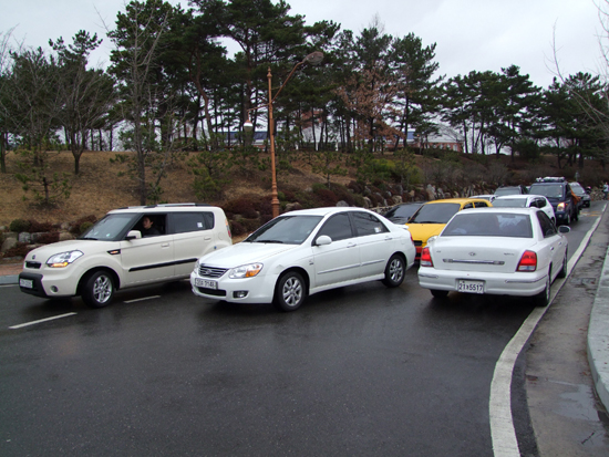 2차선 도로인데 자동차들은 왜 세 갈래로 가고 있을까요? 양보하는 마음으로 운전하면 안될까요?