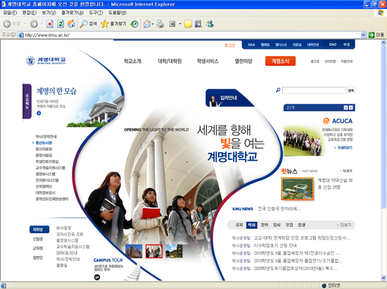 2010년 3월부터 우리대학 홈페이지가 정식적으로 개편되었다. 이번 홈페이지 개편은 지난해 10월부터 한달간 이전 홈페이지를 통해 설문조사를 실시하였다.