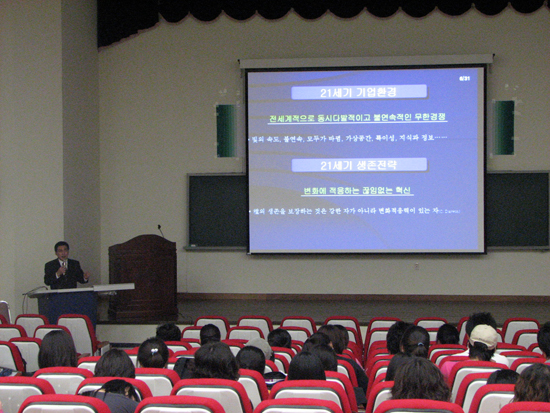 이날 강연자인 김창로 대구·경북중소기업청장은 기술혁명과 인류의 발전에 따른 기업의 대응과 경영마인드, 21C의 기업환경과 생존전략 등에 대해 강의했다. 또한 중소기업 지원체계와 정책방향에 대한 설명과 지원 프로그램의 이용에 대한 자신의 소견을 밝혔다.