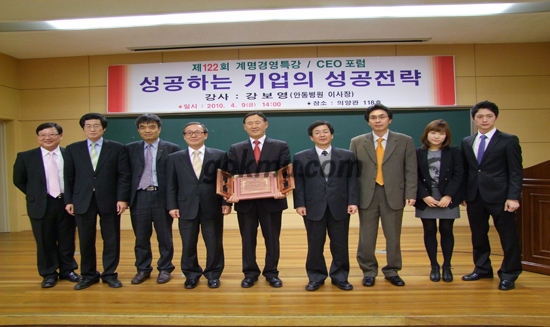 강보영 동문은 우리학교를 졸업하고 서울대, 연세대, 한양대 등 3개 대학의 최고경영자 과정 등을 수료했으며 현재는 KAIST에서 ATM 공부를 하고 있다.