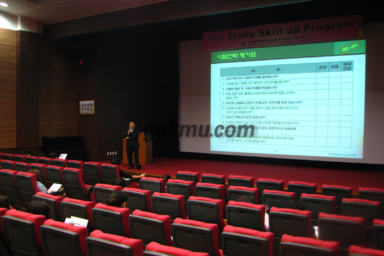 강사는 성적관리를 위한 노하우로 자기지침, 시험준비, 답안작성 방법 등 시험관리 전략에 대해서 이야기하며 “복습을 생활화하고 실천 가능한 계획을 세워 일찍 시험 준비를 시작하라”고 조언했다.