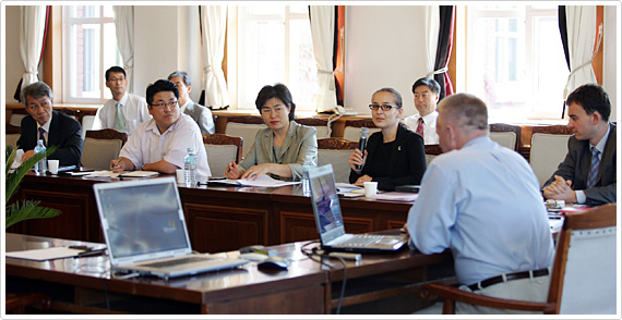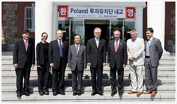 19일(화) 오전 11시 학교법인 계명대학교 신일희 이사장은 설명회 참석차 방문한 베아타 보구쉬(폴란드 대사관 소속), 필립헤벨케(폴란드 대사관 무역투자진흥부 대표)씨를 비롯 리샤르드(LSSE 경제구역사장), 앤드류(LSSE 관계자) 등 4명의 대표단을 영접했다.